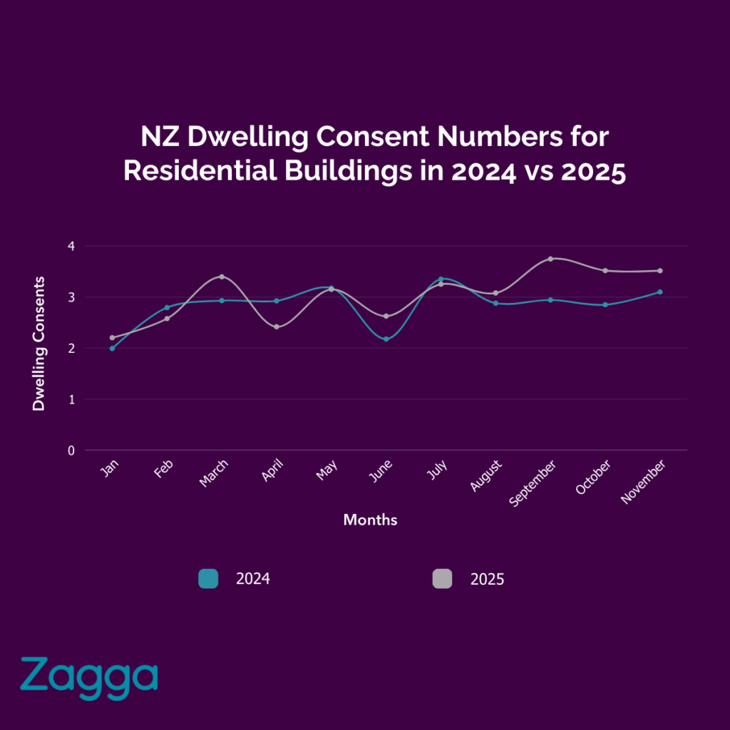 Lower interest rates are also beginning to signal a potential turning point in New Zealand’s residential building cycle. Residential building consents have been trending higher for several months and are now up around 7% year-on-year, with the lift led by Auckland and supported by gains in Canterbury, Otago, and Wellington.